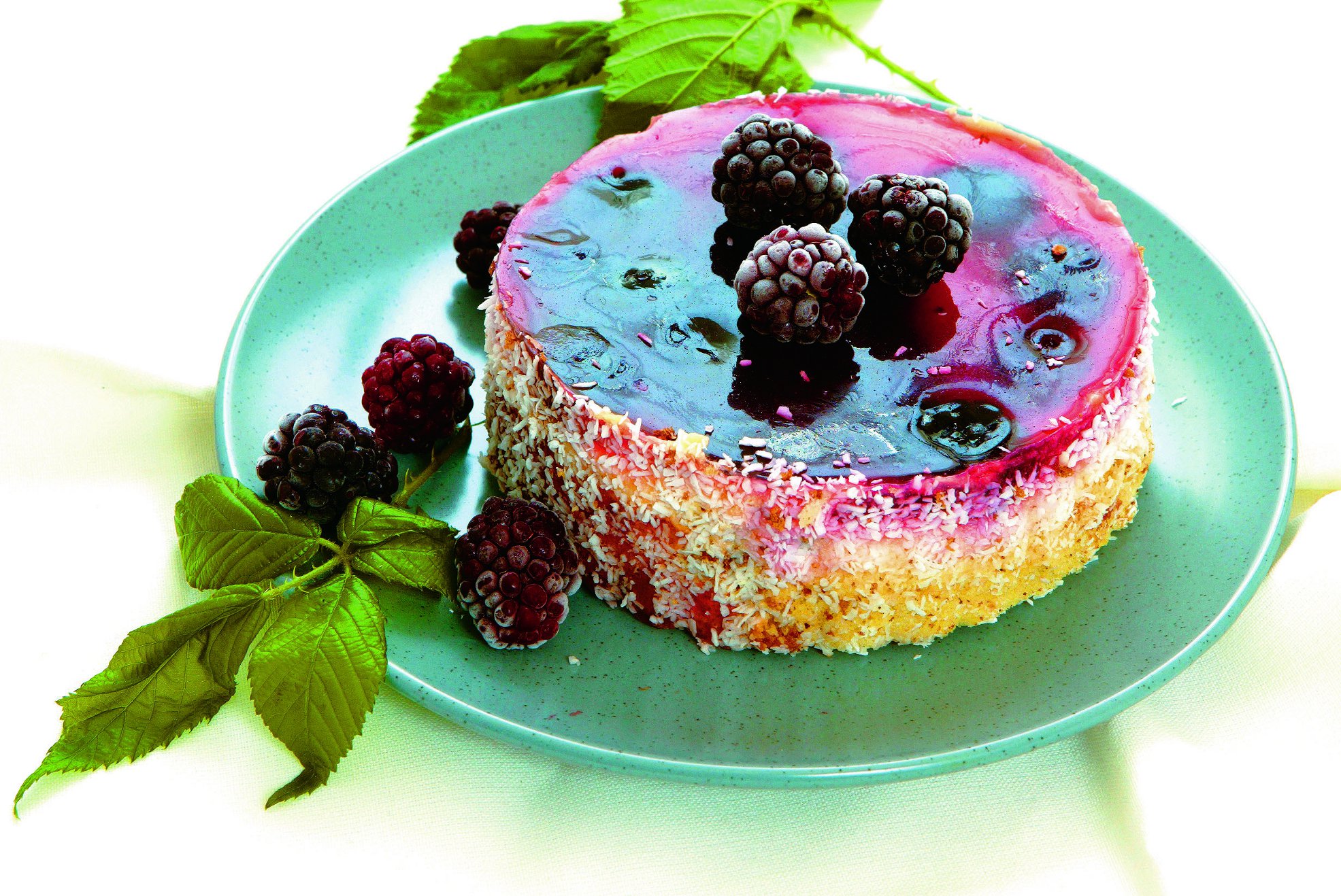 2. Cu 5 minute înainte de a fi gata, se scoate prăjitura din cuptor şi se unge cu gem sau dulceaţă de mure. Se taie bucăţi şi se serveşte fierbinte. Se ornează cu nucă de cocos şi fructe congelate.