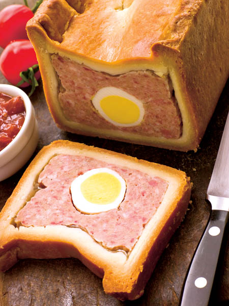 4. Se scoate coca pentru foaie, se întinde pe planşetă, se aşază în forma de cozonac şi se lasă marginile astfel încât să se poată înfăşura carnea. Se pune carnea tocată, ouăle, se acoperă cu marginile din cocă şi se bagă în cuptorul încins. După ce s-a copt, se lasă la răcit înainte de a se servi.