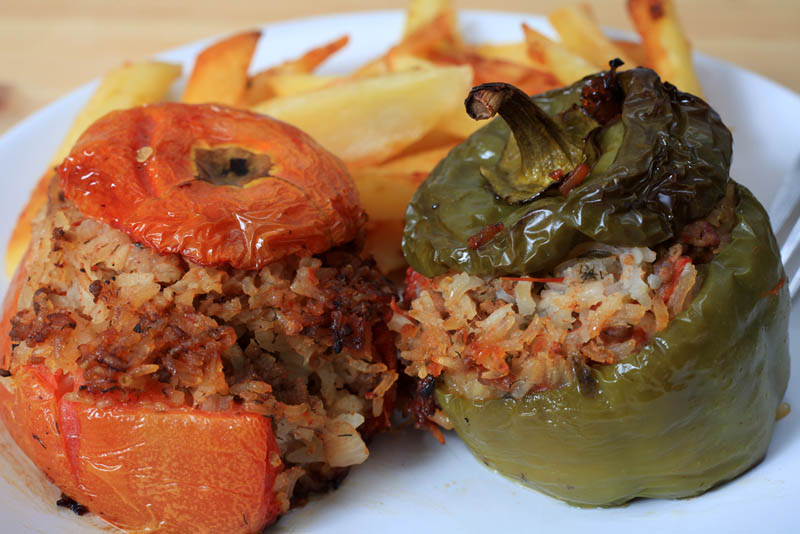 1. Se curăţă ardeii, se spală bine şi se lasă să se scurgă cu gura în jos. La fel se curăţă şi roşiile iar miezul se păstrează pentru sos.