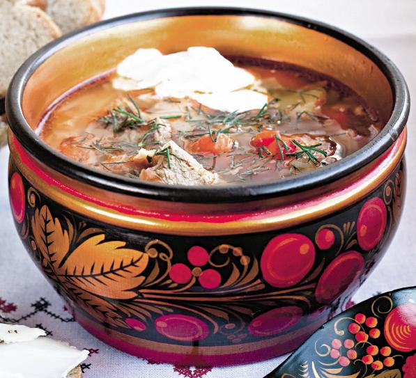 5. După ce a mai dat în câteva clocote, se adaugă borşul, după gust, şi se mai lasă să fiarbă 5 minute. Borşul moldovenesc se serveşte cu smântână. Se ornează cu mărar proaspăt.
