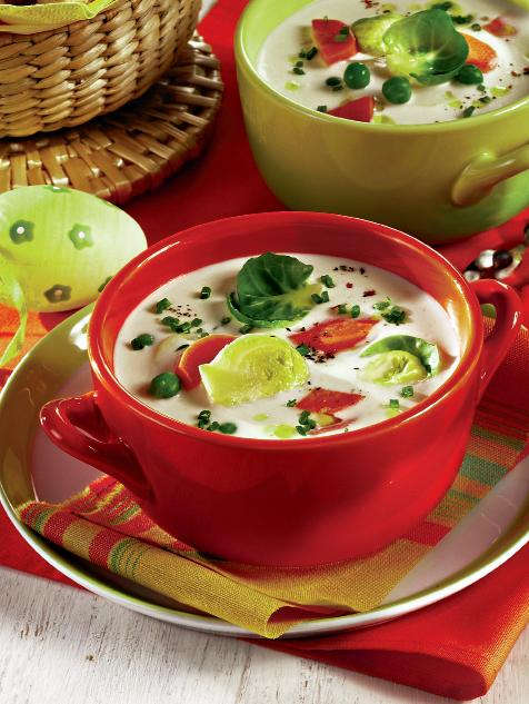 - Între timp, se pun gălbenuşurile într-un bol, se freacă cu un praf de sare şi se adaugă smântână. Ciorba se ia de pe foc şi se toarnă oul bătut împreună cu smântâna. Se serveşte ornată cu leuştean şi cu frunze de salată.