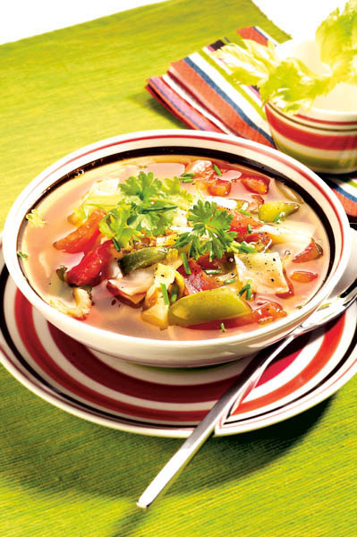 1. Se curăţă şi se spală toate legumele. Se taie cubuleţe potrivite sau rondele, după preferinţă, şi se pun la fiert în apă cu un praf de sare.