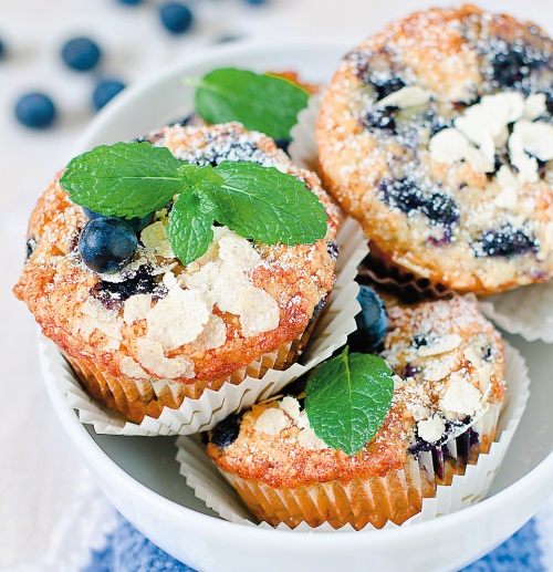 Îţi plac prăjiturile cu fructe de pădure? Încearcă această reţetă de brioşe cu afine şi fulgi de migdale!