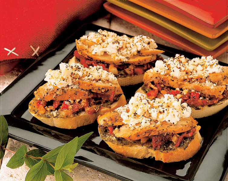 1. Franzela se taie felii subţiri, de aproximativ 1 cm, care se prăjesc într-o tigaie de teflon, apoi se freacă cu usturoi şi se stropesc cu ulei.