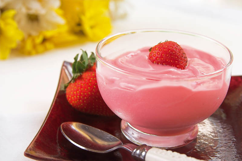 3. Se amestecă cele două compoziţii sau se mixează, se toarnă în cupe transparente şi se lasă la rece 1-2 ore. Când se serveşte se ornează cu fructe proaspete.