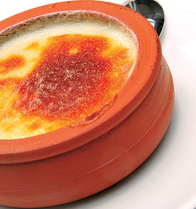 3. Un vas de cuptor se unge cu puţin unt şi se toarnă amestecul de orez. Se pune deasupra restul untului şi se dă la cuptorul preîncălzit 5 minute. După acest timp, se presară zahărul şi se mai lasă 5 minute la cuptor pentru ca acesta să se topească.