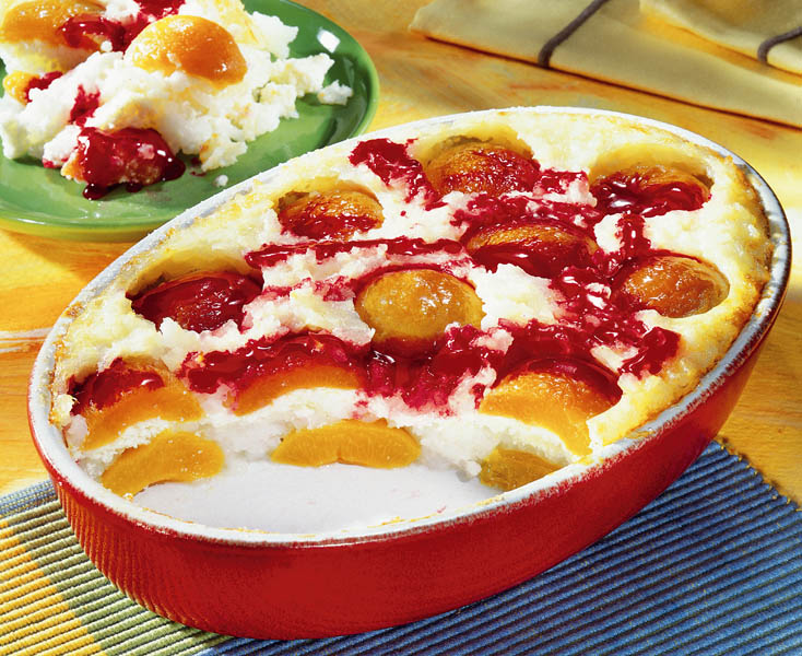 3. Se unge un vas termoizolant cu unt, se pune un strat de prune, un strat de orez şi iarăşi un strat de prune. Se dă la cuptor 15-20 minute, apoi se lasă să se răcească. Se stropeşte cu sirop de fructe şi se poate servi.
