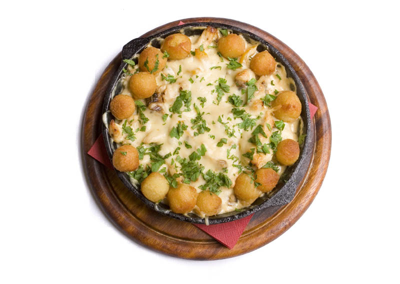 4. După ce s-a copt şi budinca de cartofi, se aşază buletele deasupra, se presară pătrunjel verde tocat şi se servesc calde.