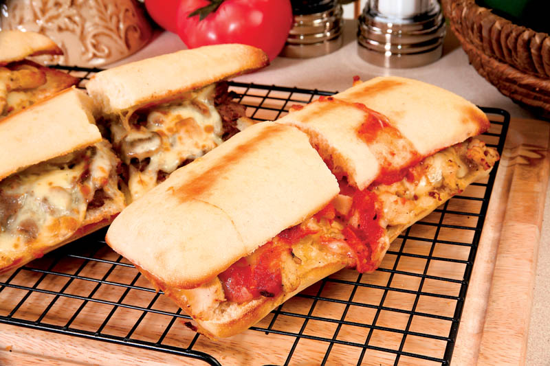 3. Între timp, se pregătesc ingredientele pentru umplutură şi se dă drumul la cuptor. După ce a crescut aluatul, se întinde în tavă şi se pun ingredientele în ce ordine preferaţi, doar pe jumătate din aluat. Cu cealaltă jumătate se acoperă.