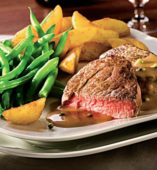 - Se prepară sosul alb din unt topit, pesmet şi smântână, se adaugă piperul şi se mai lasă să clocotească câteva minute. Între timp, se pun feliile de muşchi pe grătar şi se lasă să se rumenească. Se servesc cu sos şi cu garnitură de cartofi şi fasole.