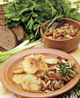 4. După ce au fiert ghebele, se scot cu spumiera, se scurg şi se prepară cu oţet, ulei de măsline, sare şi usturoi pisat. Salata de ghebe se serveşte cu cartofii copţi. Se ornează cu mărar, pătrunjel şi rozmarin.
