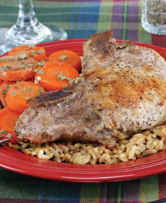- Pe un platou, se pune un pat de orez fiert, deasupra se aşază ceafa de porc şi soteul de morcovi. Se ornează cu frunze de pătrunjel şi cimbru proaspăt.