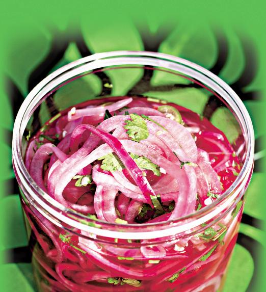 4. Într-un borcan se aşază rondele de ceapă, printre care se pun câteva foi de dafin şi batonul de scorţişoară.