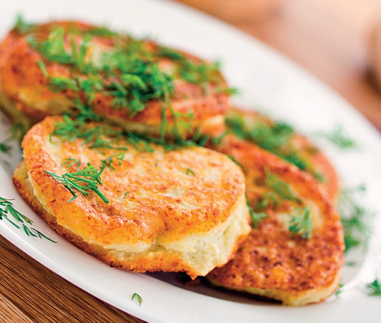 4. Într-o tigaie se încinge uleiul în care se prăjesc chiftelele de cartofi. Se servesc presărate cu mărar tocat fin.