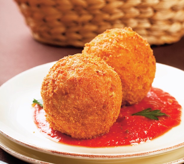 2. Se taie mozzarella cuburi mici şi pe măsură ce, cu mâna umedă, se formează chiftele de orez, se introduce cât un mic cub de brânză. Chiftelele se rumenesc într-o tigaie cu ulei şi se scot pe şervete de hârtie.