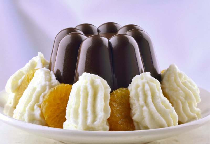 5. Înainte de servire, se răstoarnă pe farfurioare şi se decorează cu frişcă dietetică şi felii de mandarine sau portocale, după gust.