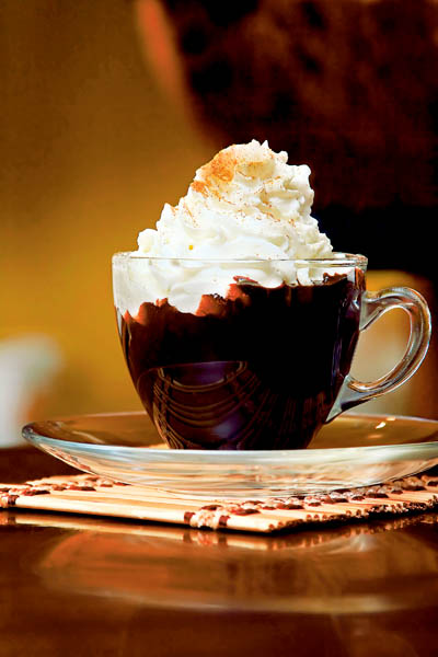 3. Ciocolata caldă se toarnă în ceşti şi se ornează cu frişcă şi scorţişoară pisată sau cacao. Se serveşte imediat.