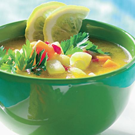 2. După ce au fiert cartofii, se pun roşiile tăiate în opt şi dovlecelul tăiat cubuleţe. Se storc lămâile şi se strecoară sucul.