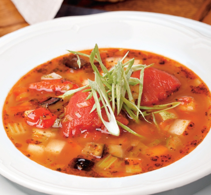 2. În acelaşi ulei se pun la călit întâi bulionul şi, după un minut, se adaugă ceapa, morcovul şi prazul tăiate mărunt.