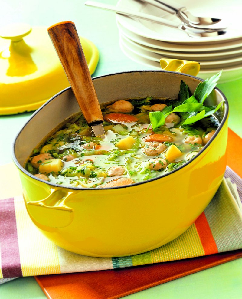 4. Se adaugă borşul şi sucul de roşii, se condimentează cu sare şi piper şi se serveşte cu leuştean verde tocat mărunt şi cu smântână, după gust.