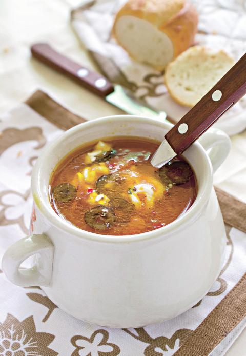4. Din zarzavaturile fierte, se mai păstrează morcovii şi ţelina, se taie cubuleţe şi se pun în ciorbă. Se mai lasă să fiarbă puţin, se adaugă sucul de roşii şi zeama de lămâie. Se serveşte cu smântână şi pătrunjel.