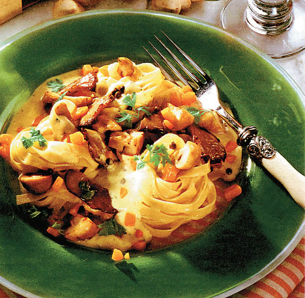 Ciuperci cu sos de smântână şi paste