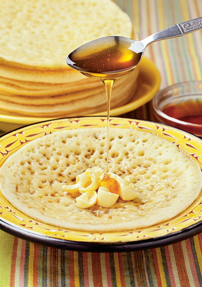 3. Într-o tigaie încinsă şi unsă cu foarte puţin ulei se pune cu polonicul câte o măsură. Se întinde şi se coace numai pe o parte. Imediat ce apar găurile şi clătita este coaptă pe o parte se scoate. Se separă clătitele pentru a nu se lipi una de alta.