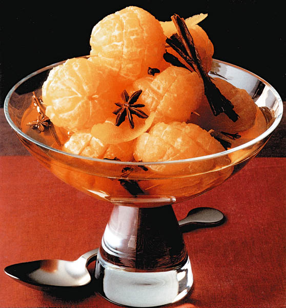 2. Clementinele se spală, se curăţă de coajă şi se taie în 4 – 5 felii transversale. Se prind pe câte o scobitoare şi se cufundă în siropul aromat. Se lasă la rece 4 ore, apoi se pot servi.