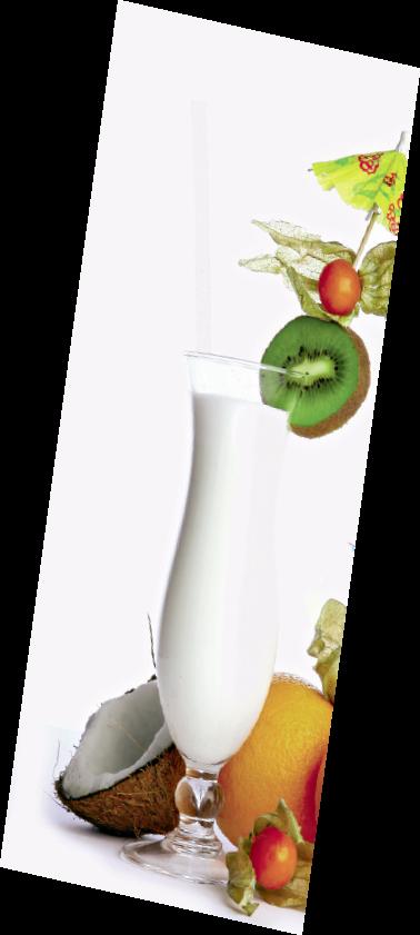 1. Se amestecă laptele cu cel de cocos sau cu esenţa, apoi se adaugă zahărul vanilat. 2. Băutura se pune în pahare cu câte două cuburi de gheaţă. Se ornează cu fructe exotice.