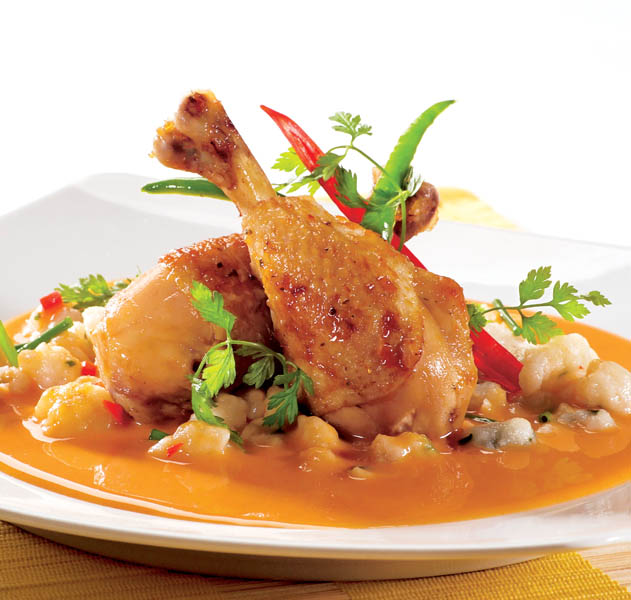 1. Se spală pulpiţele şi se crestează sau se înţeapă cu furculiţa ca să se pătrundă bine. Se condimentează cu sare, piper şi se pun într-o cratiţă cu unt sau cu ulei să se înăbuşe.