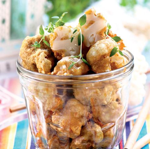 1. Se spală conopida în apă rece. Se înlătură partea verde. Se desface în bucheţele şi se lasă circa 10-15 minute în apă cu sare. Se pune la fiert în apă clocotită cu sare, timp de circa 10 minute. Este important să nu fiarbă prea tare, pentru că altfel nu va rezista la prăjit. Se scurge bine.