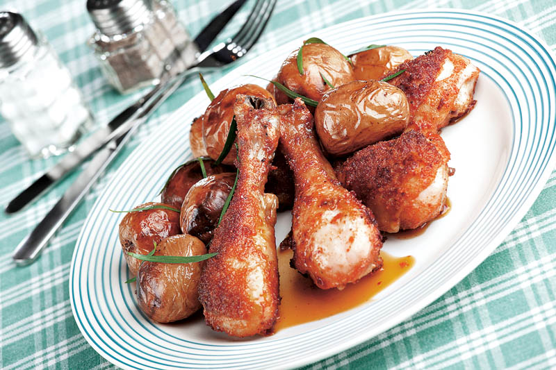 4. Se prăjesc în uleiul încins, se rumenesc bine şi, cu câteva minute înainte de a le scoate, se adaugă rozmarinul proaspăt. Copanele de pui se servesc împreună cu cartofii rumeniţi şi cu salată de crudităţi.