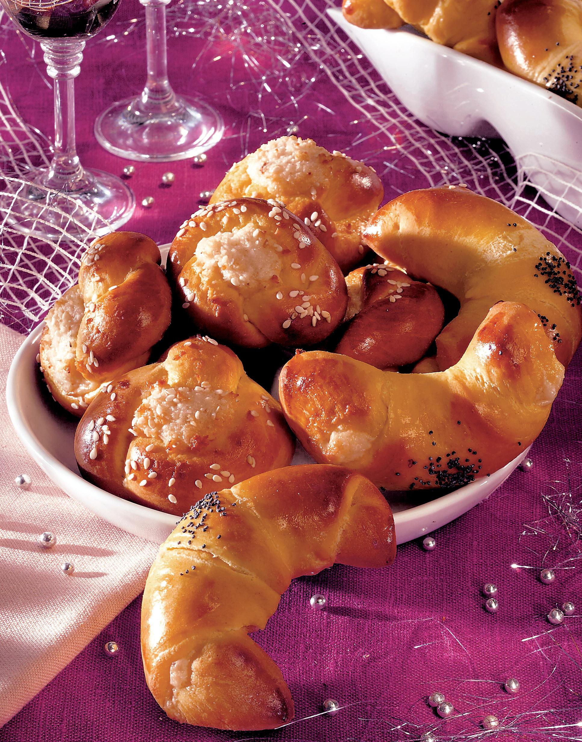 1. Făina se amestecă cu drojdia, laptele, sarea şi uleiul şi se face un aluat omogen care se lasă la dospit o jumătate de oră. Coca se frământă şi se împarte apoi în patru părţi egale, se fac pâinişoare rotunde, se presară cu făină şi se lasă iar la dospit o jumătate de oră.