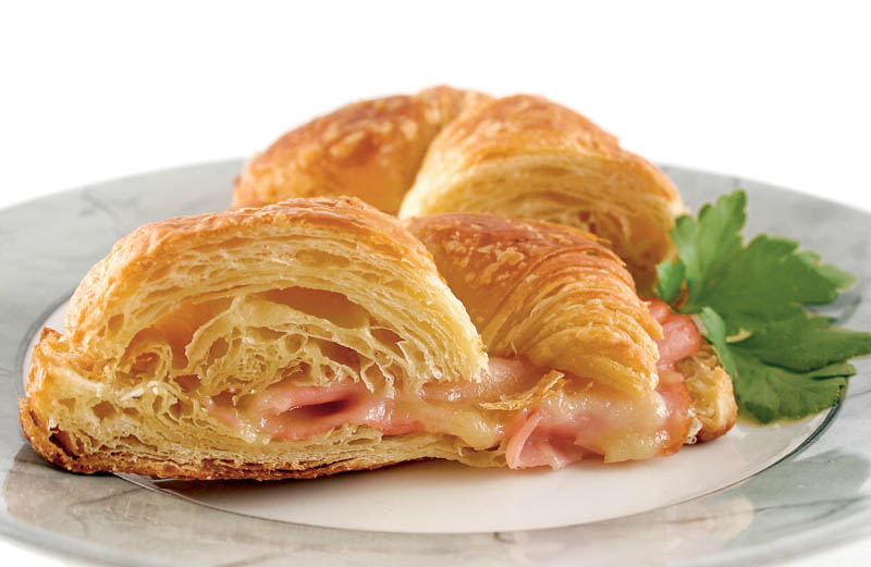 4. Pe aluatul deja pregătit se pune compoziţia şi se rulează cornurile bine ca să nu se desfacă în timpul coptului. Se ung cu ou pe deasupra şi se bagă la cuptor. Se servesc calde la micul dejun cu lapte bătut sau doar cafea.