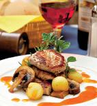 4. Se adaugă şi ciupercile feliate, se amestecă bine cu sosul din tavă, se mai adaugă un cubuleţ de unt şi se lasă să se coacă. După ce s-au rumenit, se servesc ornate cu frunzuliţe de busuioc şi crenguţe de rozmarin.
