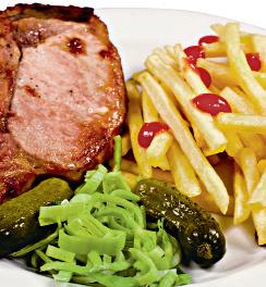 - Cotletele se pun pe grătarul încins şi se lasă se rumenească pe ambele părţi. Se servesc cu garnitură de cartofi prăjiţi şi castraveciori muraţi, ornate cu cimbrul proaspăt.