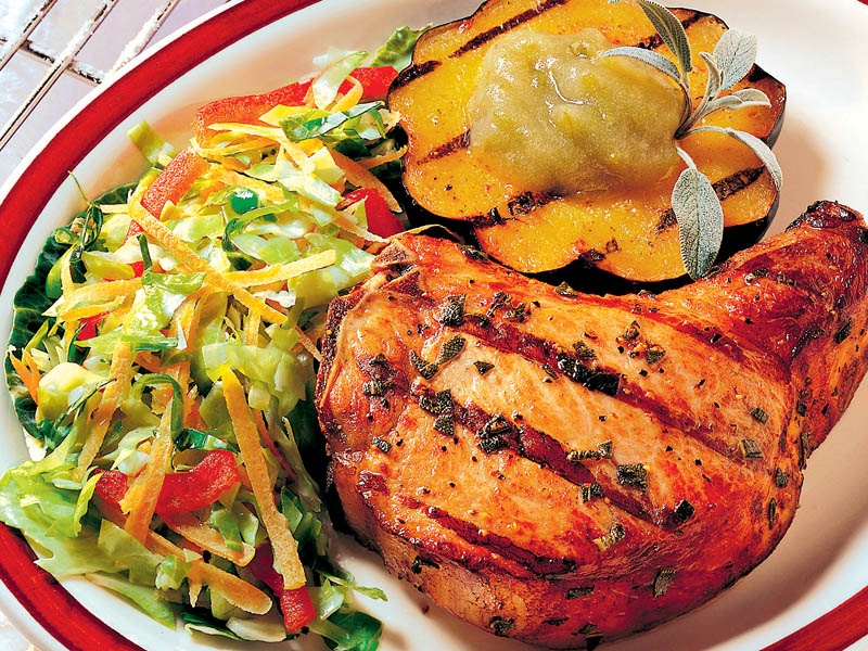 Cotlet de porc la grătar cu vinete coapte