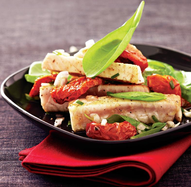Crap cu salată de roșii coapte și usturoi