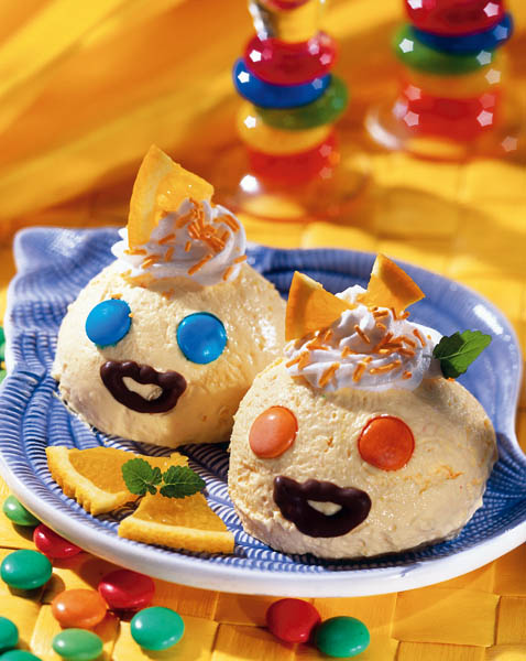 3. Când se serveşte se ornează cu frişcă, felii de portocale, câteva fire de coajă rasă de portocale şi bomboane colorate.