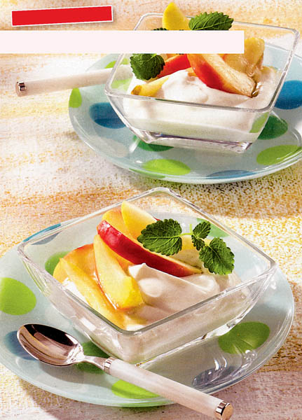 2. Se împarte această cremă în cele două boluri, iar deasupra se pun piersicile din compot bine scurse, tăiate felii.