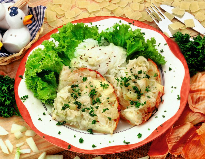 2. Când varza începe să se înmoaie, se adaugă chimenul şi piperul. La sfârşit, se pun şi verdeţurile tocate fin.