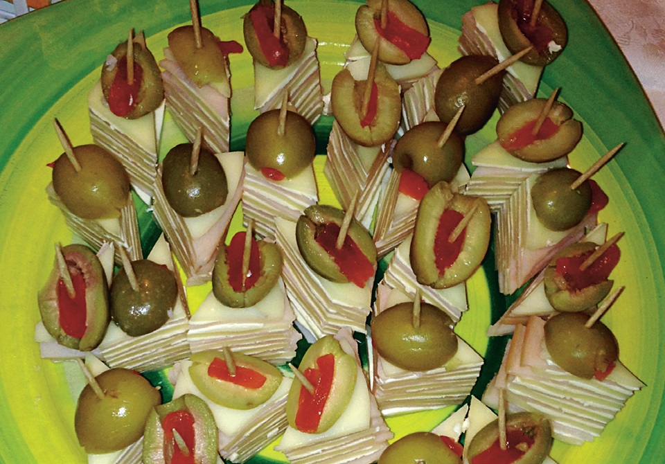 5. După ce se ia rulada de la frigider, se taie în bucăţi şi se ornează cu măsline.