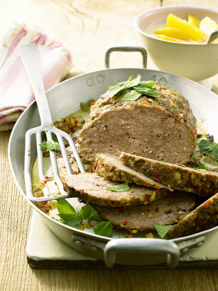 2. Carnea fiartă şi morcovii căliţi se dau prin maşina de tocat. Se amestecă cu ficatul, inima şi rinichii tăiate cubuleţe, franzela înmuiată în supa în care a fiert carnea, ceapa, usturoiul, mărarul şi pătrunjelul, toate tocate mărunt, ouăle crude, o jumătate de linguriţă de sare şi piper măcinat.