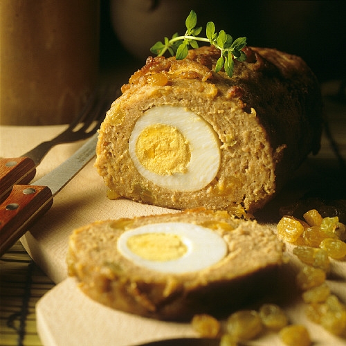 2.Ceapa, usturoiul, mărarul şi pătrunjelul, toate spălate şi curăţate, se taie mărunt şi se adaugă peste restul compoziţiei. Se condimentează cu sare şi piper. Dacă această compoziţie nu se leagă bine, se mai adaugă un ou crud. Ouăle fierte se pun în mijlocul amestecului şi se rulează.