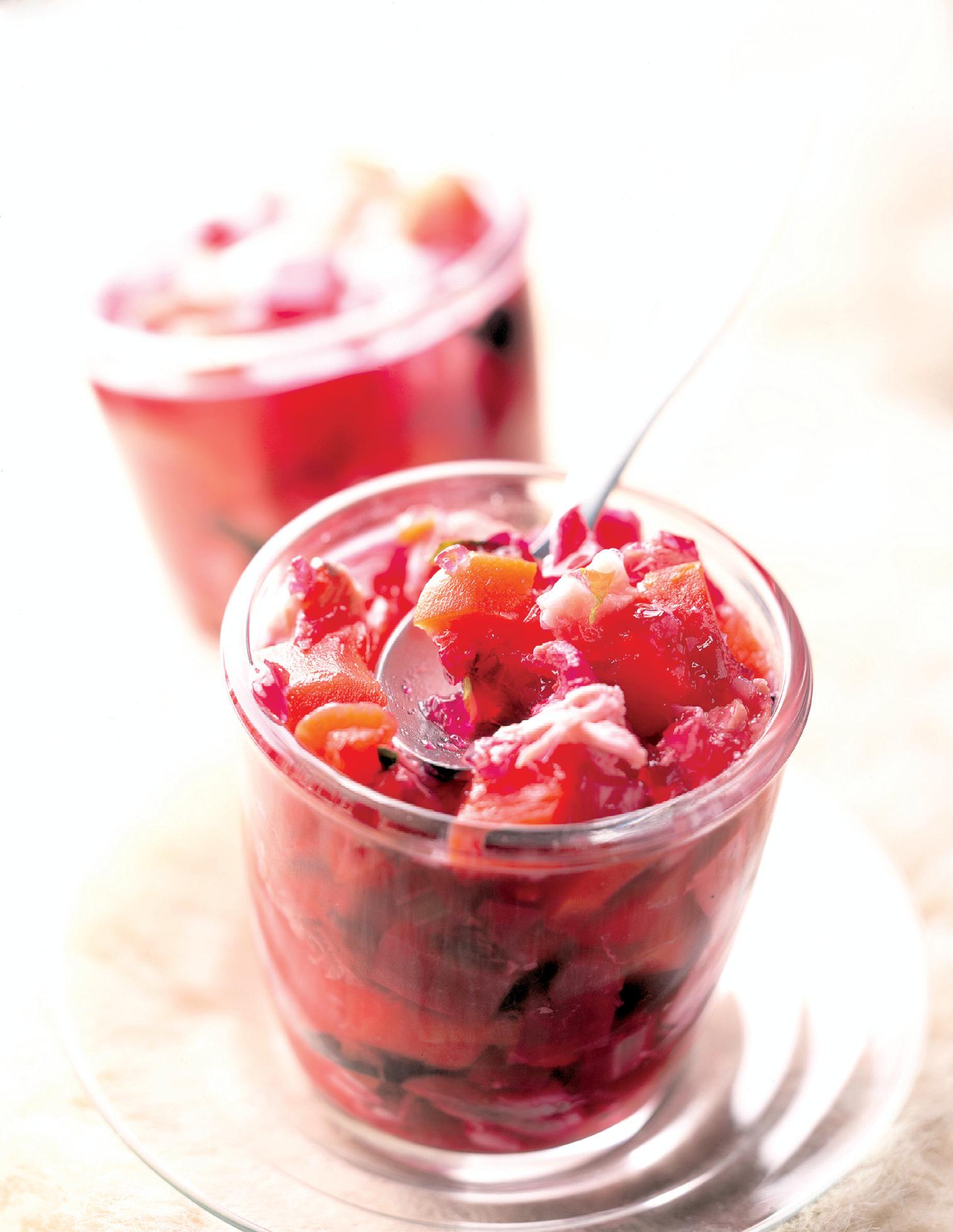 2. Portocalele, la rândul lor, se spală bine şi se taie bucăţele mici, cu tot cu coajă.