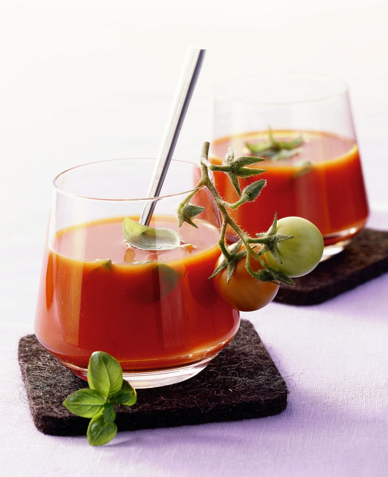 1. Se spală roşiile, morcovii şi merele şi se pun la stors în storcătorul de fructe. Sucul se serveşte rece, cu un praf de sare şi frunzuliţe de busuioc pentru un gust deosebit şi pentru decor. Acest suc este foarte hrănitor, fiind un tonic excelent.