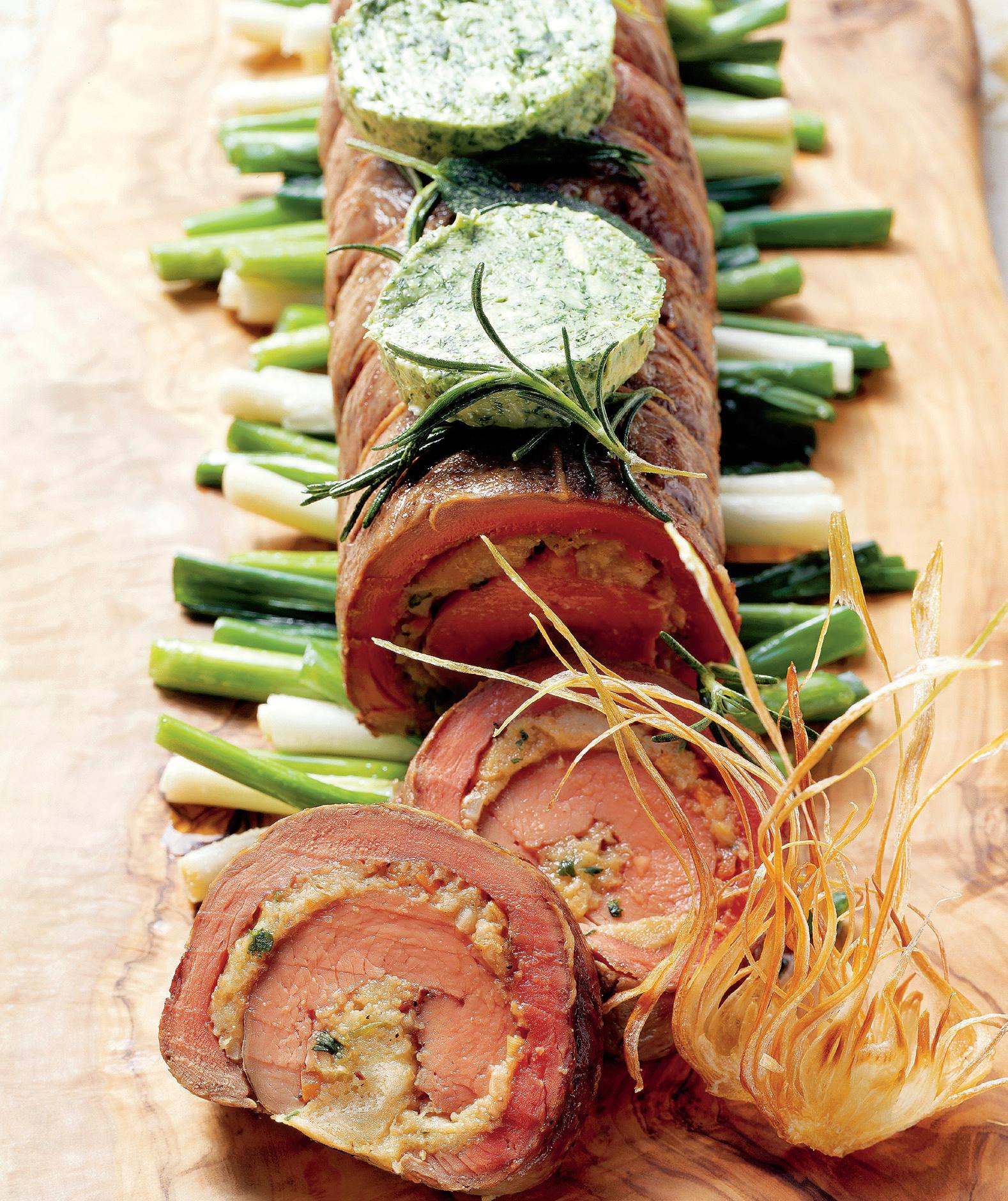 9. Se întinde această pastă pe toată suprafa-ţa cărnii din tigaie şi se rulează bine. Se împachetează într-o folie de aluminiu şi se pune în cuptorul încins.