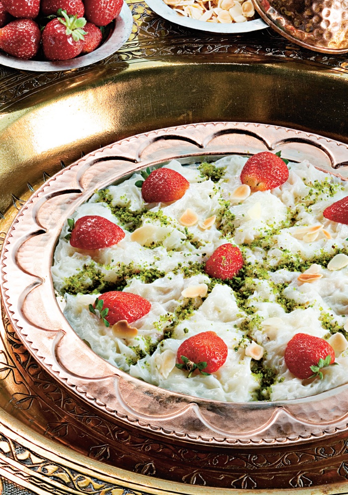 5. Se acoperă cu folie transparentă şi se dă la rece pentru 3 ore. Se serveşte numai rece, ornată după preferinţă cu boabe de rodie, căpşune, fistic sau alune.