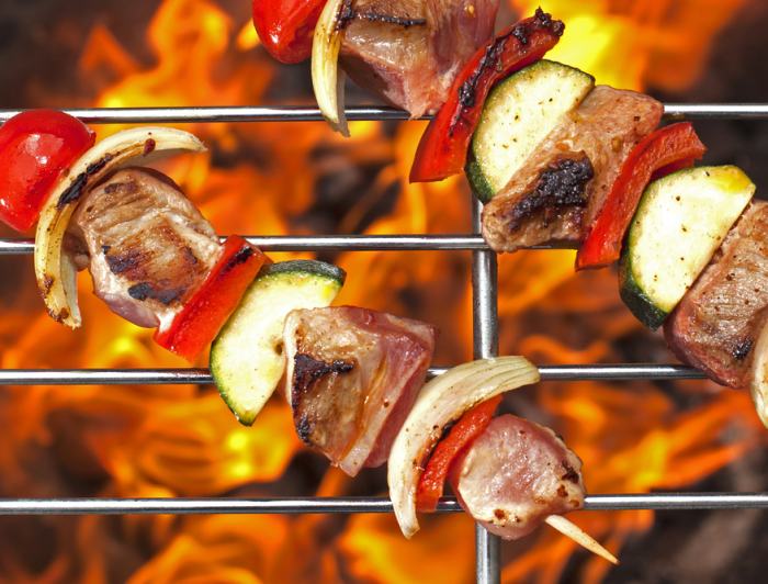 4. Se ung bețele cu ulei, se combină legumele și carnea și se pun pe grătarul încins. Se întorc pe toate părțile și, după ce s-au rumenit, se servesc cu diferite garnituri și sosuri.