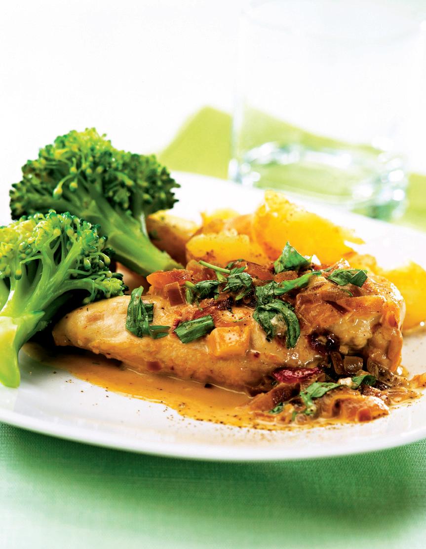 2. Într-o tavă pentru fripturi, se așază bucățile de carne. Se adaugă ceapa şi broccoli bucheţele. Se toarnă, în mod egal, peste fiecare bucată de piept, sosul din miere și usturoi. Se introduce tava în cuptorul încins în prealabil, la foc potrivit, timp de 30 de minute.